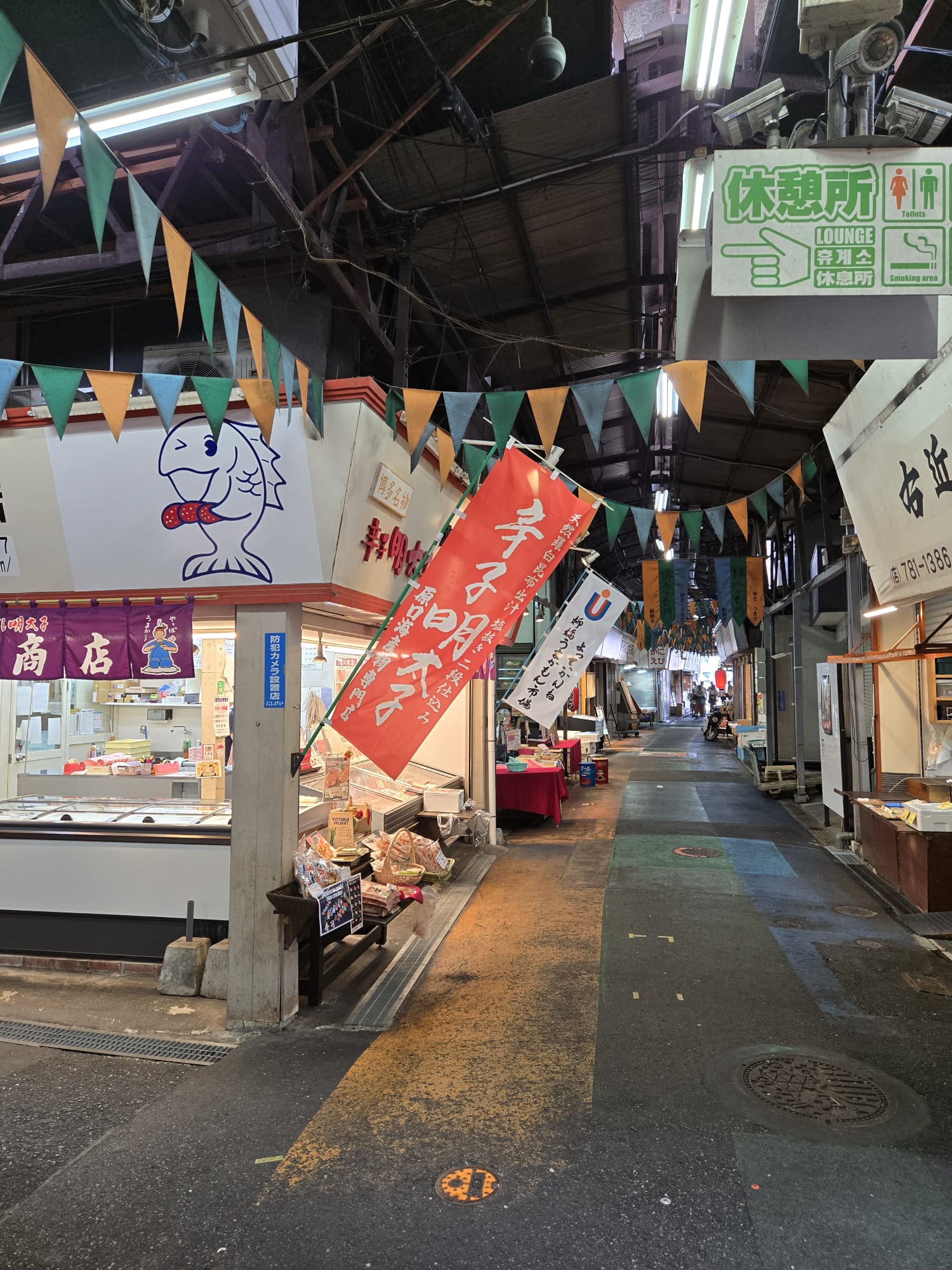 Journée plus grise, nous sommes sortis au bon moment et nous sommes passés entre les gouttes. Première visite de la journée, une usine de « mentaiko », spécialité phare de Fukuoka. Il est composé d’œufs de colin ou de lieu jaune salés et épicés, nous n’avons pas pu visiter l’usine car nous n’avions pas réservé mais nous avons pu déguster différentes sortes de « mentaiko ». Les enfants n’ont pas trop apprécié, Thomas et moi avons trouvé cela bon.