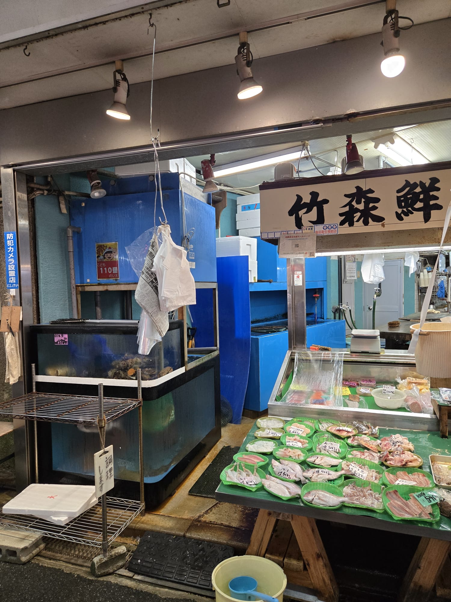 avec ses différents étals de poissons car nous sommes au bord de la mer.