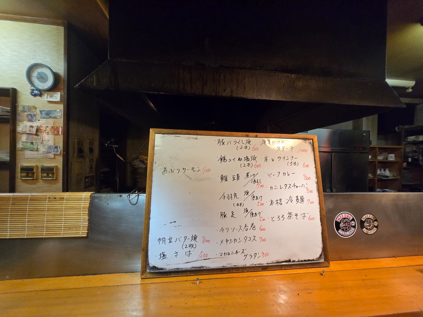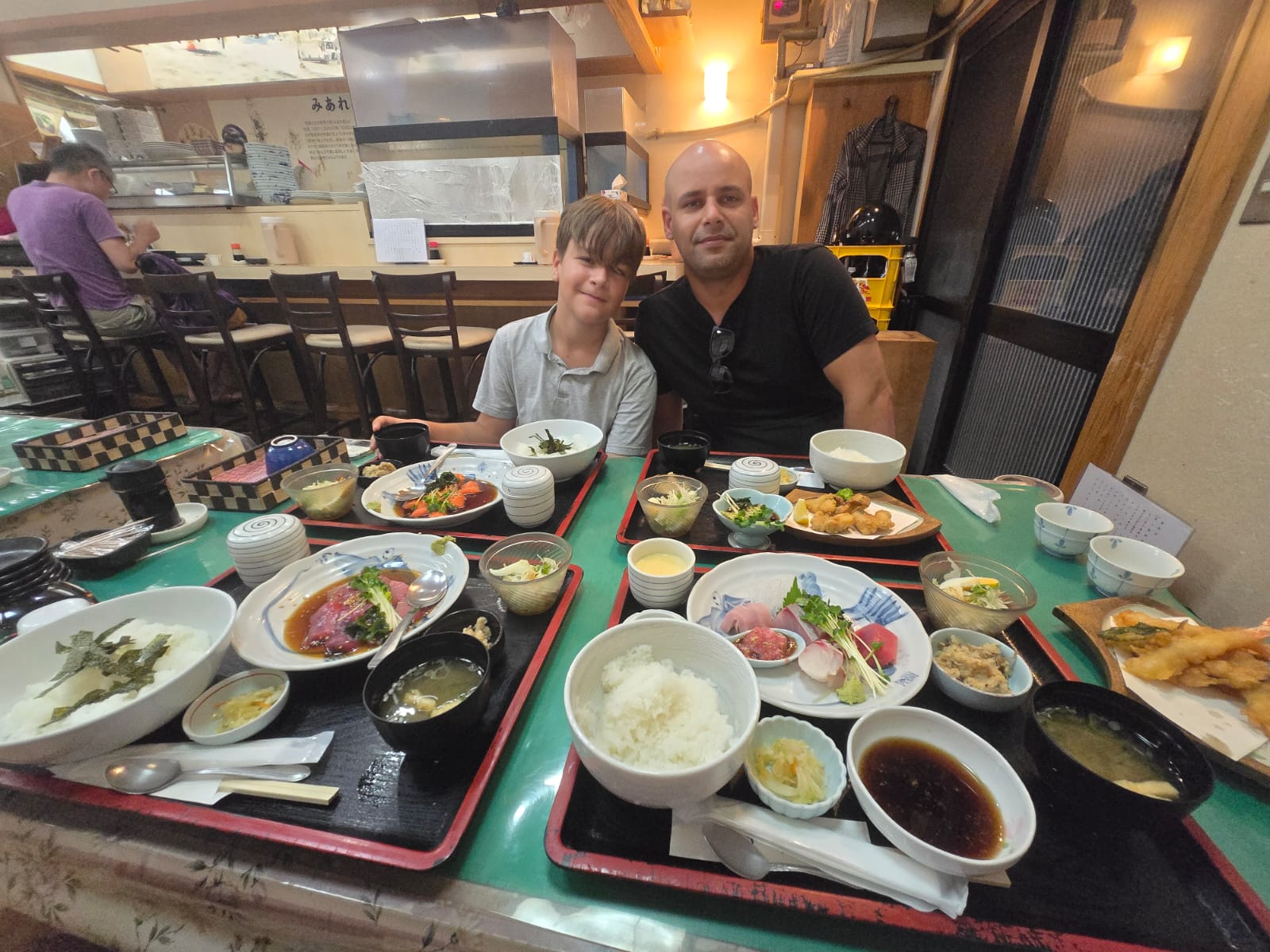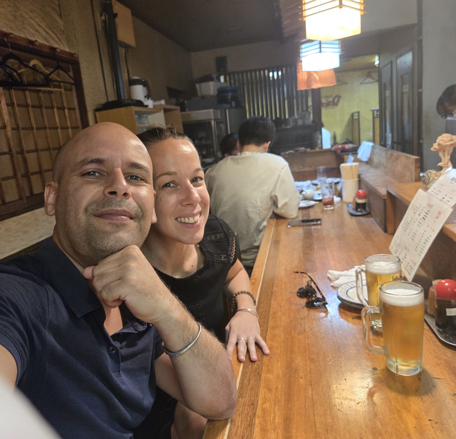 Les enfants fatigués de la journée sont restés à l’appartement pendant que nous nous sommes rendus une dernière fois à la fête près de la gare et nous avons osé rentrer dans un Izakaya (taverne japonaise). C’était à la bonne franquette, nous avons sélectionné des plats un peu au hasard sur la carte.