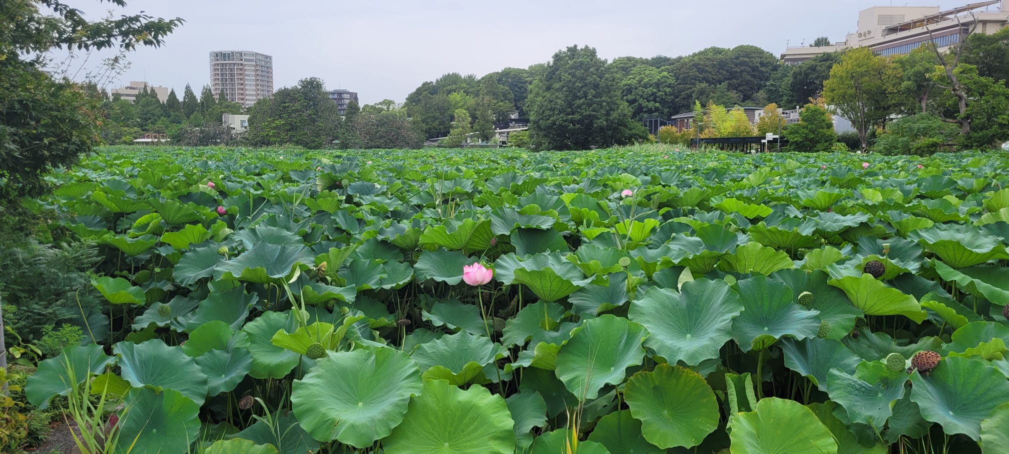 En contemplant ces beaux lotus japonais, qui fleurissent l’été.